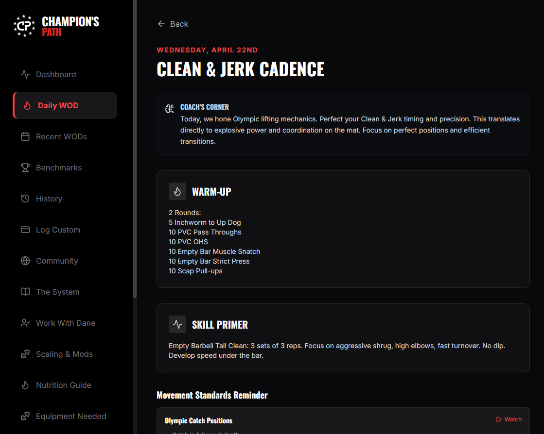 Champion's Circle is the complete strength and conditioning system that built two state champions and a U17 World silver medalist. Daily programming, the training app, benchmarks, community. $29 a month. Cancel anytime.